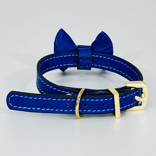 Handcrafted Leather Pet Collar with Stylish Bow & Golden Metals